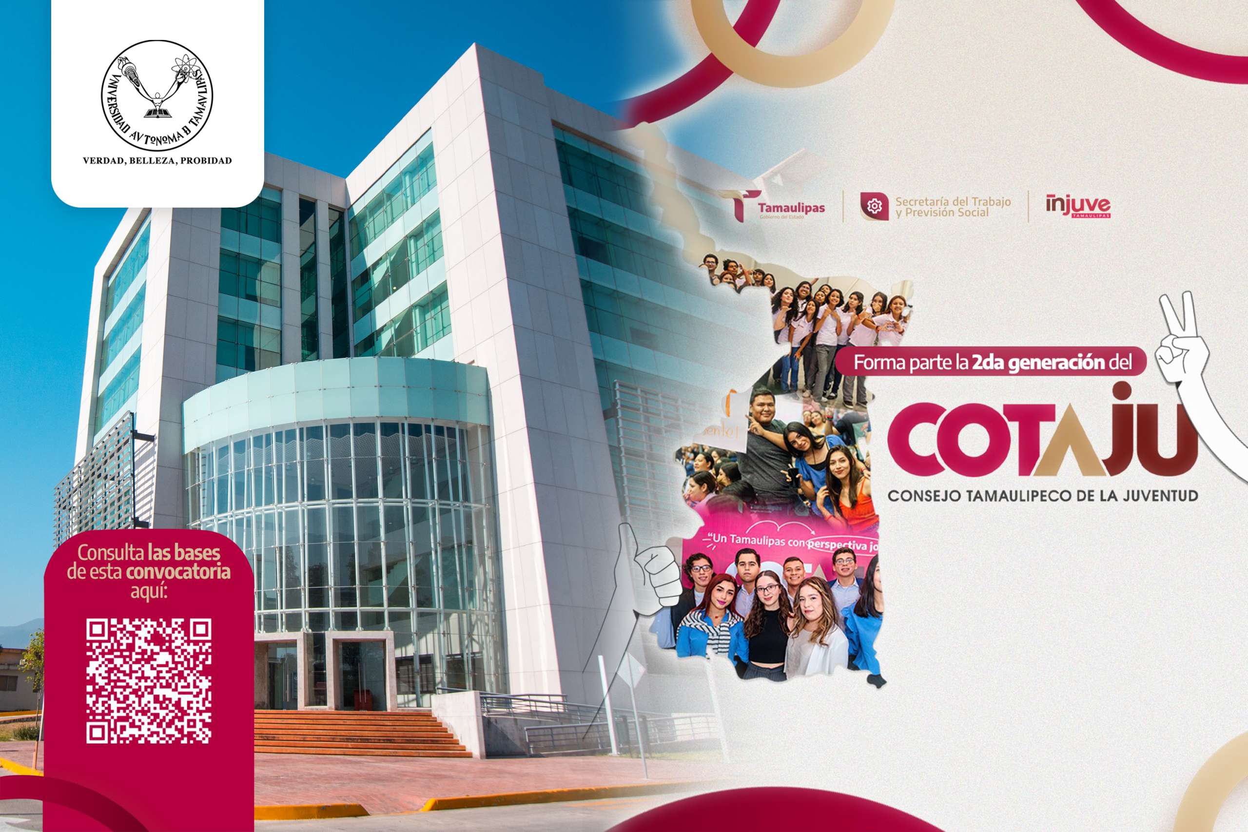 La Universidad Autónoma de Tamaulipas (UAT), en su compromiso por fomentar la participación de las y los jóvenes tamaulipecos en los procesos que impactan el desarrollo social, político, económico y cultural del estado, invita a su comunidad estudiantil y académica a participar en la convocatoria para integrar la segunda generación del Consejo Tamaulipeco de la Juventud (COTAJU) 2025.
