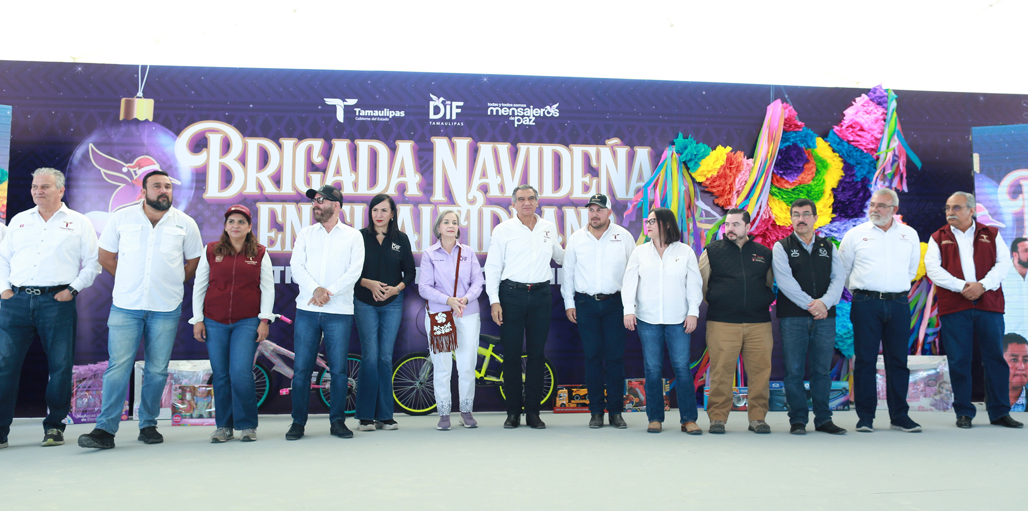 El rector y su esposa acompañaron al gobernador Américo Villarreal y a su esposa María de Villarreal durante la Brigada Navideña en el Altiplano “Transformando Familias”, que llevó múltiples beneficios a habitantes de los cinco municipios de esa región del estado.