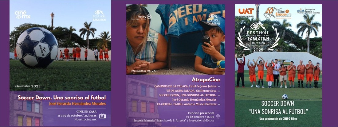 En la selección oficial de la categoría de “Cortometraje universitario noreste documental” participará el documental “Soccer Down: una sonrisa al futbol”, el cual explora la inspiradora historia de una escuela de fútbol ubicada en el corazón de Tampico, que abre sus puertas a niños y jóvenes con Síndrome Down, ofreciendo mucho más que entrenamiento deportivo.