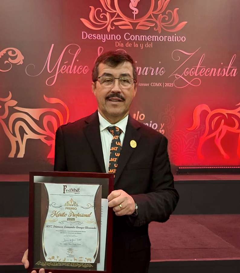 El Premio al Mérito Profesional 2025, es considerado una de las distinciones más altas otorgadas por la FedMVZ, la máxima organización gremial que representa a las médicas y médicos veterinarios zootecnistas de México a nivel nacional e internacional. Dámaso Anaya Alvarado es médico veterinario zootecnista por la UAT, cuenta con las maestrías en Producción Animal y en Administración de Empresas Agropecuarias; en su trayectoria se ha desempeñado como profesor en la UAT, impartiendo clases de Nutrición Animal, contribuyendo al fortalecimiento académico y profesional de numerosas generaciones de estudiantes.