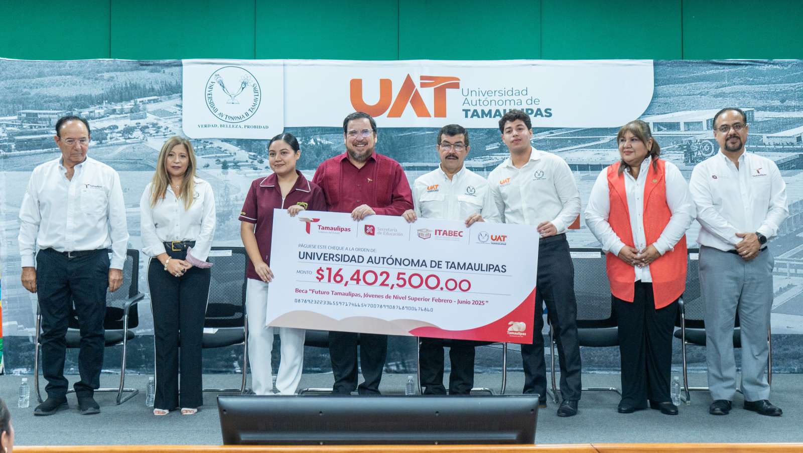 Durante la ceremonia, se informó que en esta entrega de estímulos la UAT recibió, en la zona norte, 1 814 becas; en la zona sur, 2 195; y en la zona centro, 2 552. Destacándose, además, que las becas han contribuido a reducir la deserción escolar hasta en un 80 por ciento.